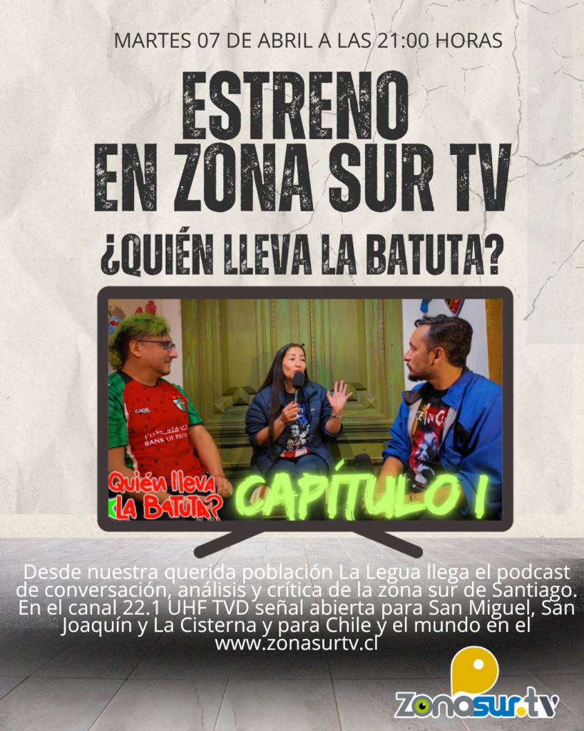 “¿Quién lleva la batuta?” se estrenará este martes 7 de abril a las 21:00 horas por Zona Sur TV, con repetición el domingo 12 de abril en el mismo horario, y contará con un nuevo capítulo cada mes, consolidándose como una vitrina para las voces y experiencias que construyen día a día la vida en comunidad. Canal 22.1 UHF TVD señal abierta para San Miguel, La Cisterna y parte de San Joaquín y a Chile y el mundo en nuestra página web www.zonasurtv.cl